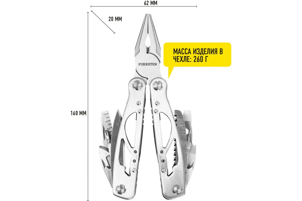 Мультитул-набор инструментов Forester MOBILE 14 функций, плоскогубцы, пассатижи, кусачки, нож OEC-3