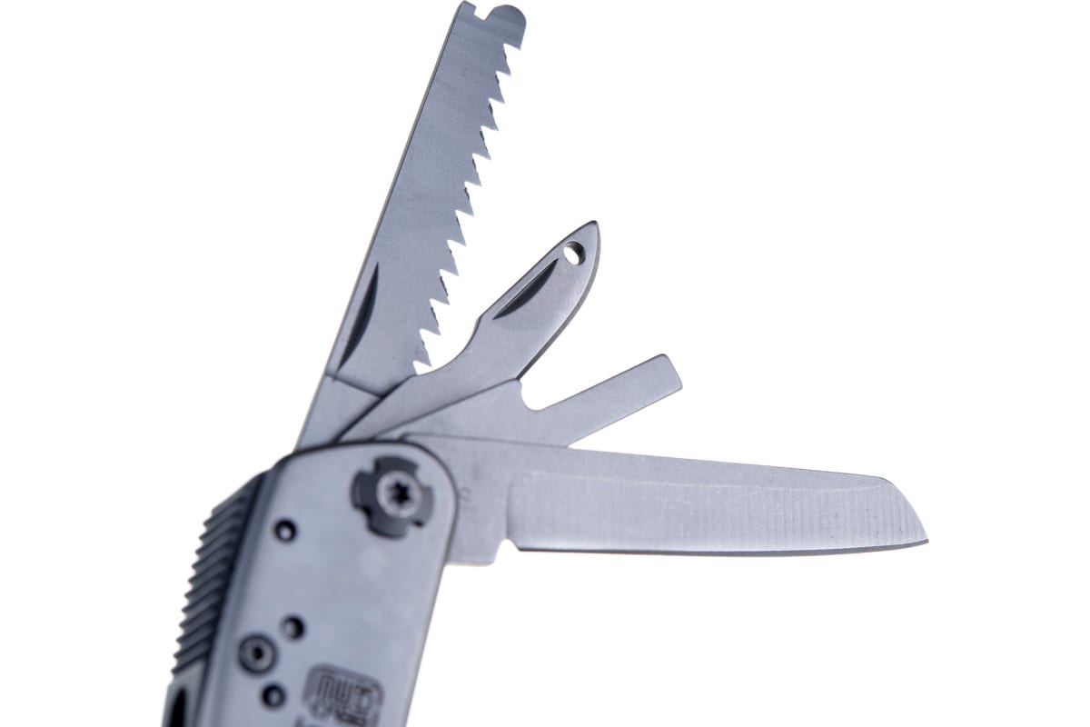 Главный инструмент в данной модели — плоскогубцы с кусачками и держателем круглых предметов. Остальные элементы представляют собою компактные инструменты, размещенные внутри рукояток, наподобие швейцарского ножа. Это ножи с гладкой и серрейторной заточкой, пила, открывалка для консервов, ножницы, шило, две небольшие плоские отвертки. Помимо того, большой набор сменных наконечников для отвертки вынесен в отдельный органайзер. Они закрепляются на держателе мультитула при помощи магнитного переходника.