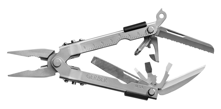 Описание Универсальный инструмент MP600 - полноценный помощник как в полевых, так и в домашних условиях, а так же в мастерской. Мультитул полностью изготовлен из нержавеющей стали. На наружные поверхности ручек нанесены линейки с делениями в дюймах и сантиметрах. Есть двусторонний напильник.