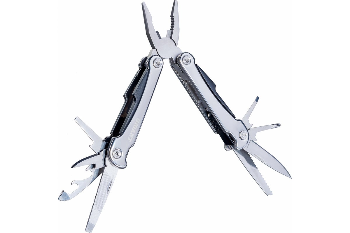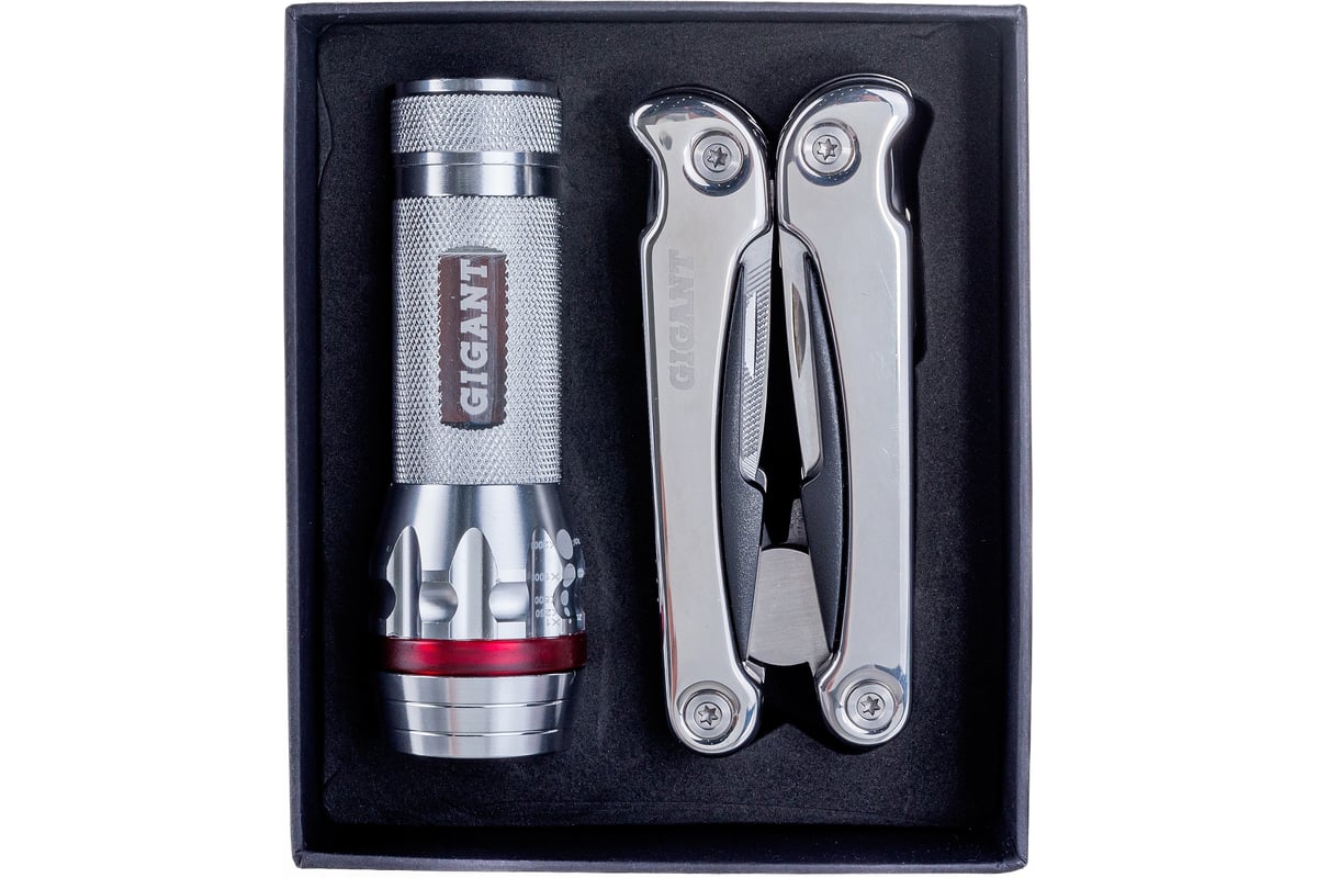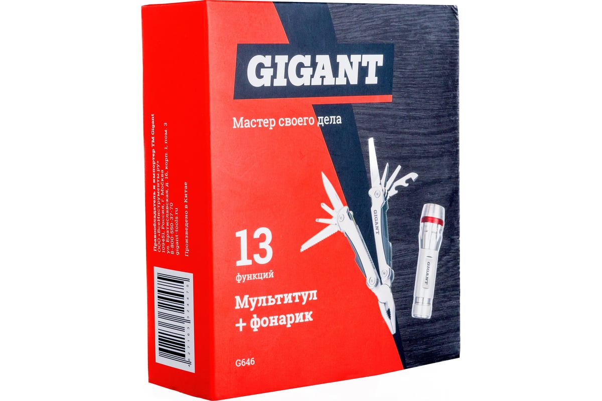 Набор мультитул Gigant 2 предмета G646 состоит из многофункционального инструмента и фонарика. Материал корпуса фонаря - сталь в сочетании с пластиком. Источником питания являются батареи типа ААА.