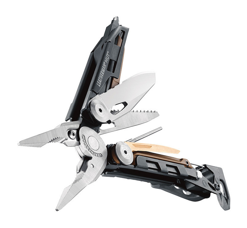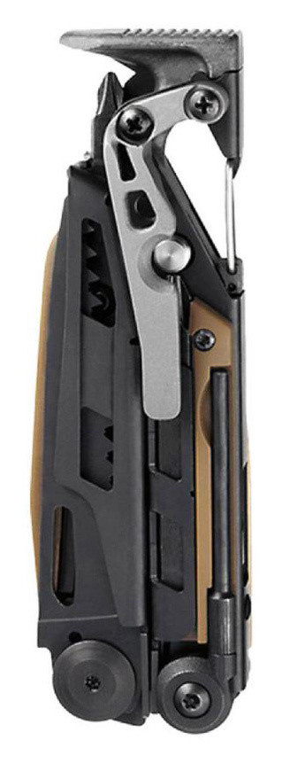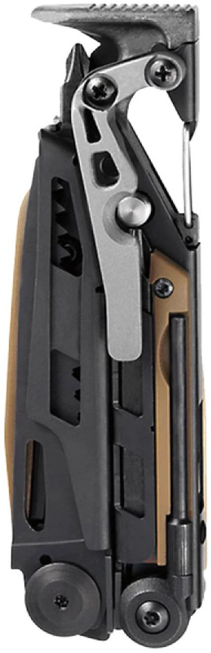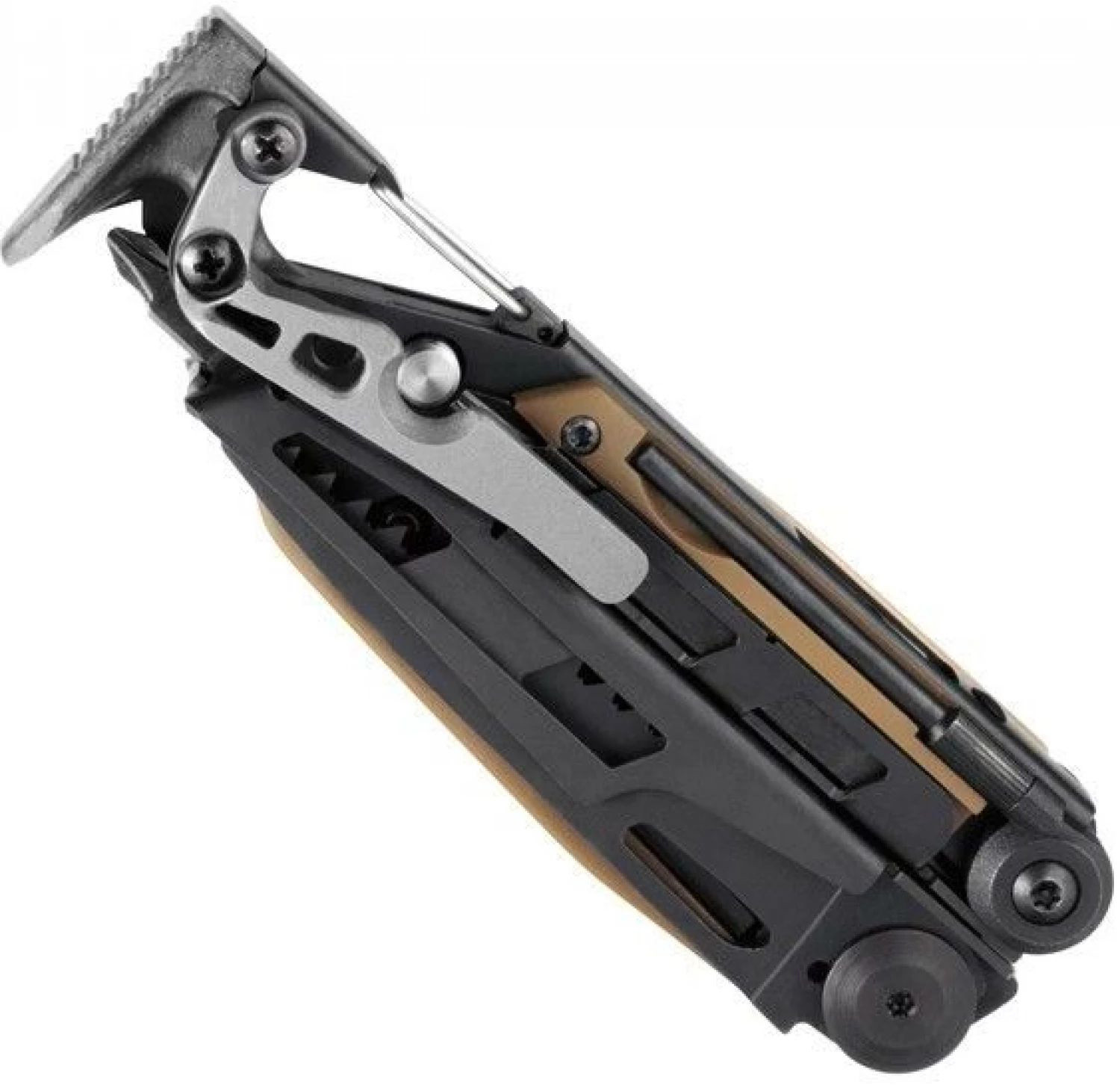 Описание: Функции: Острогубцы, пассатижи, кусачки, обжим, нож, пила, крюк, молоток, инструмент для извлечения гильз, скребок, шомпол, съёмный ключ для разборки огнестрельного оружия, карабин, держатель бит.