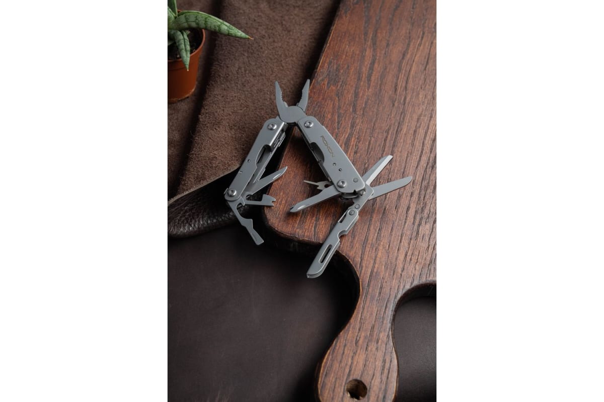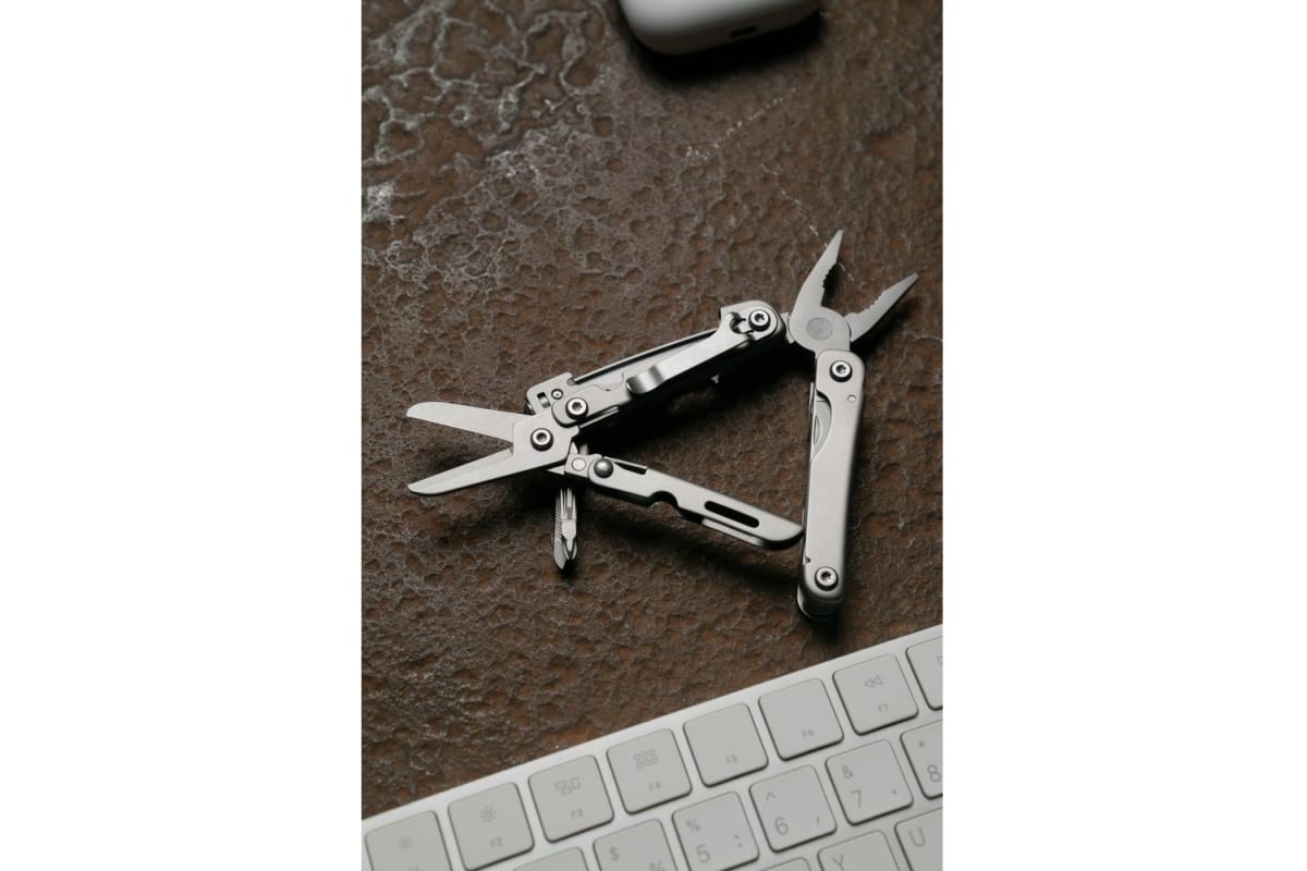 В этом мультиинструменте объединены 14 разных функций. В том числе: пилка для ногтей, отвёртка, плоскогубцы, нож, открывалка для коробок, консервный нож, ножницы, приспособление для разбивания стекла и другие приспособления. С помощью таких удобных орудий вы сможете выполнить множество стандартных операций, с которыми человек чаще всего имеет дело.