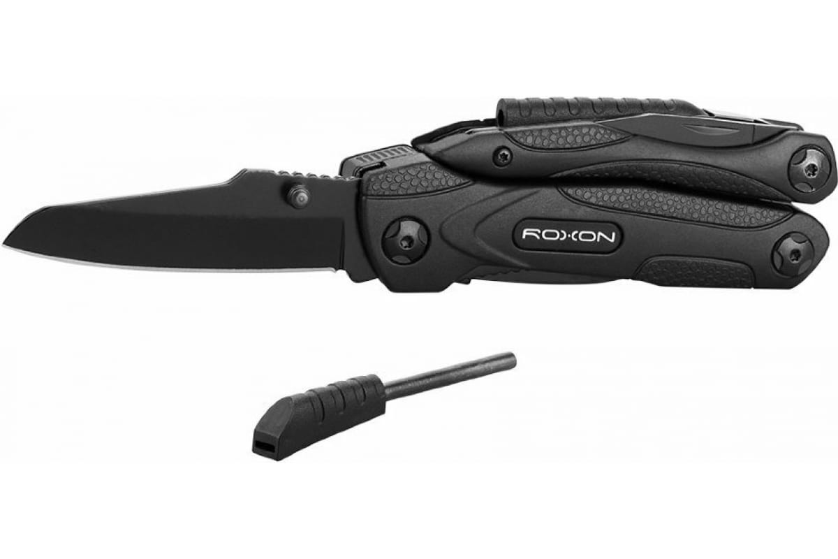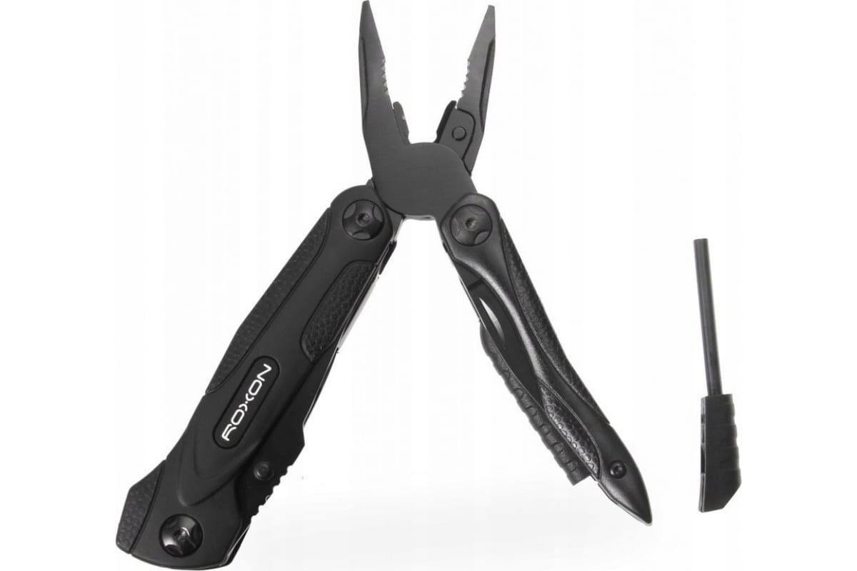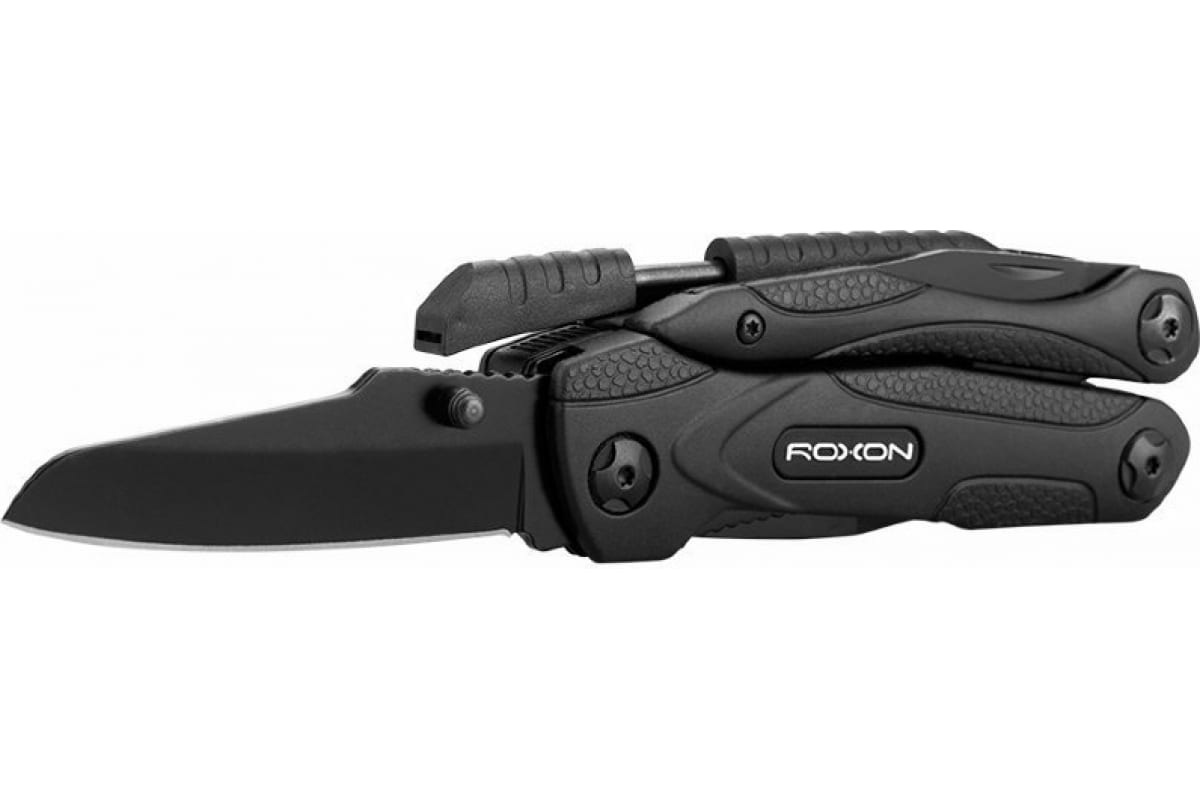 Мультиинструмент Roxon SPARK CM1349 получил все необходимые функции, чтобы стать ценным помощником для туриста, охотника, рыбака и любителя экстремального отдыха или спорта на природе. В нем равнозначные роли отведены складному ножу и плоскогубцам. Как и у классического мультитула, плоскогубцы Roxon SPARK CM1349 прячутся внутри двух пустых рукояток. Они достаточно большие и мощные, чтобы справиться с очень твердыми материалами. Твердость стали самих плоскогубцев достигает 55 HRC. Этот инструмент дополнен острыми кусачками и захватом для гаек и других круглых предметов.