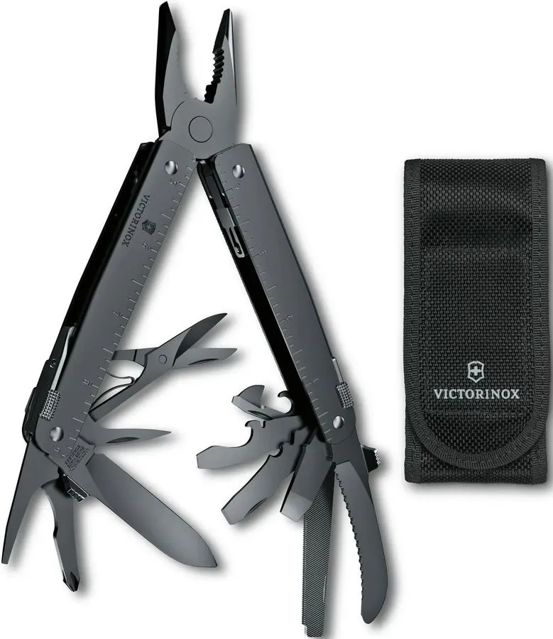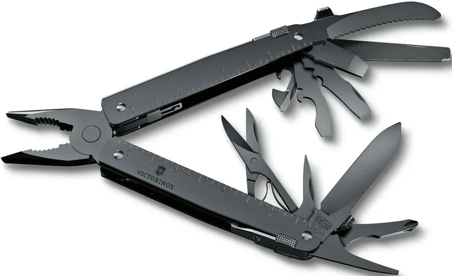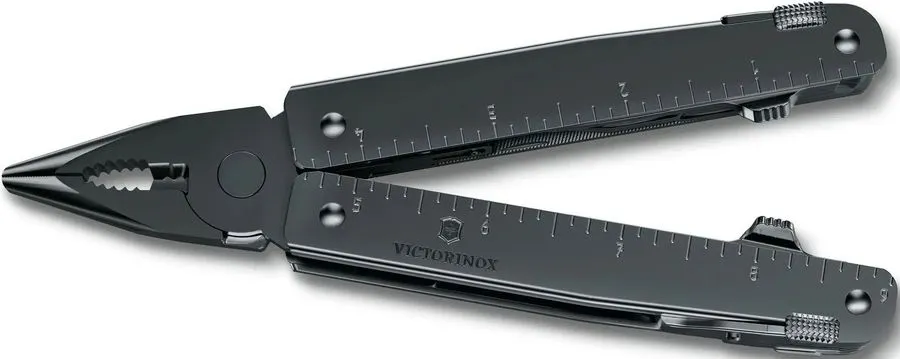 Мультитул Swiss Tool MXBS имеет корпус с размером с ладонь и включает в себя при этом целых 26 функций. Острогубцы с: кусачками для тонк. и мягк. проволоки твёрдостью до 40 HRC, кусачками для твердой проволоки, инструментом для обжима проводов большое лезвие; консервный нож с: отверткой 3 мм.; открывалка для бутылок с: отверткой 5 мм., инструментом для сгибания проволоки; отвертка 2 мм.; шило, кернер Ножницы; стропорез; пила по металлу с: напильником (с крупн. и мел. насечкой); крест. отвертка 1/2; линейка (см); линейка (дюймы); отверстие для шнурка; гнездо для штопора и зажима для переноски; стамеска 7 мм. и скребок с: инструментом для снятия изоляции, скребком для проволоки; отвертка 7.5 мм.
