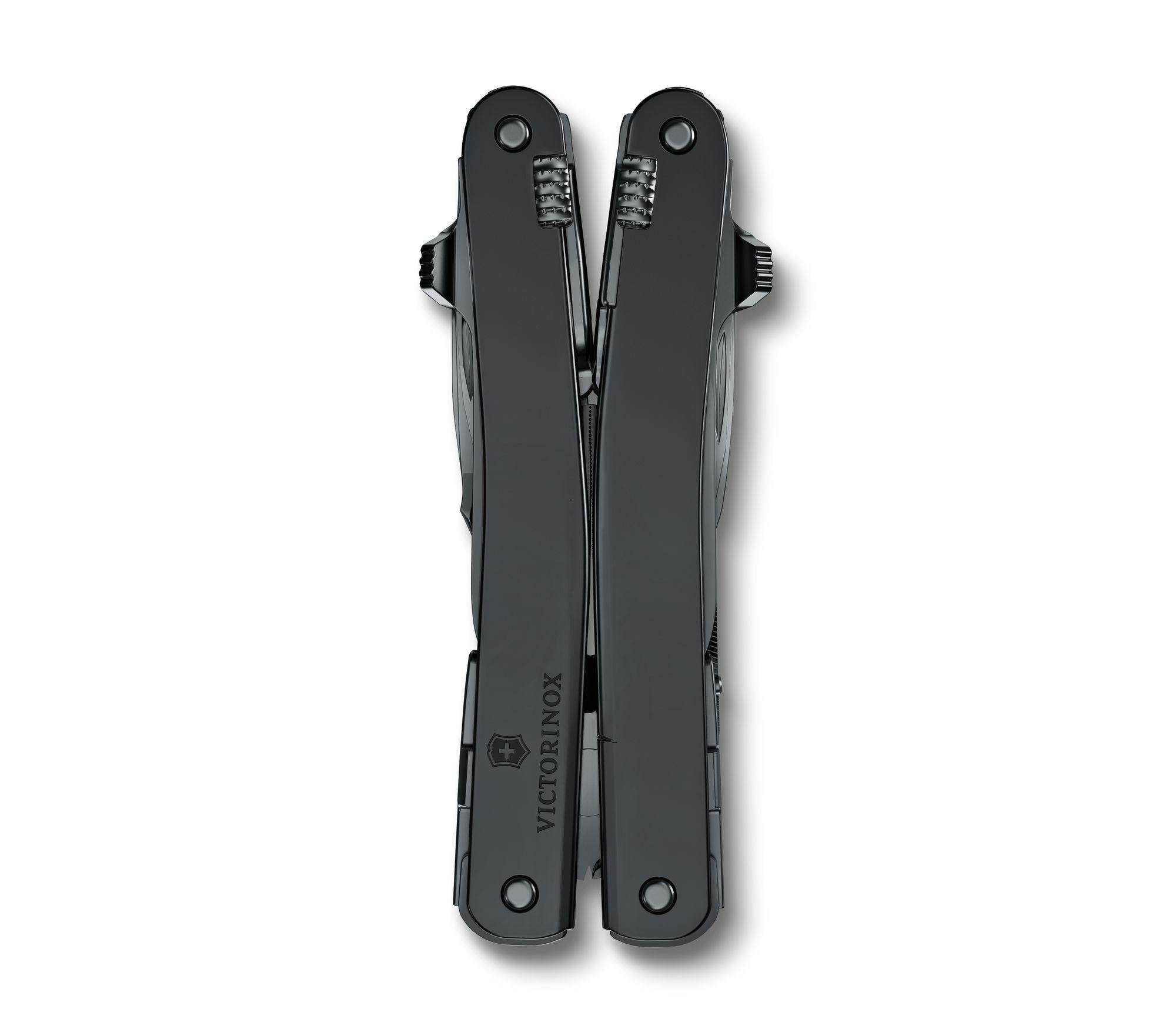 Эргономично спроектированный мультитул содержит 24 блокируемых функции, доступных для извлечения снаружи, включая лезвие и стропорез с возможностью раскрытия одной рукой. Эта особенность обеспечивает максимальную безопасность при обращении с лезвием, а также удобство использования изделия, в целом. 24 функции: острогубцы с: кусачками для тонкой и мягкой проволоки твёрдостью до 40 HRC. кусачками для твердой проволоки большое лезвие, консервный нож с: отверткой 3 мм.; открывалка для бутылок с: отверткой 6 мм.; фомкой, инструментом для сгибания проволоки, отвертка 2 мм. Шило, кернер с: многофун.крючком; ножницы, стропорез; пила по мет. с: напильником по металлу, крестовая отвёртка 1/2; стамеска 7 мм. и скребок с: кусачками для продольной и поперечной резки изоляции, инструментом для снятия изоляции, отверстие для шнурка, гнездо для штопора и зажима для переноски.