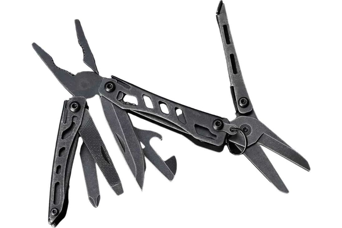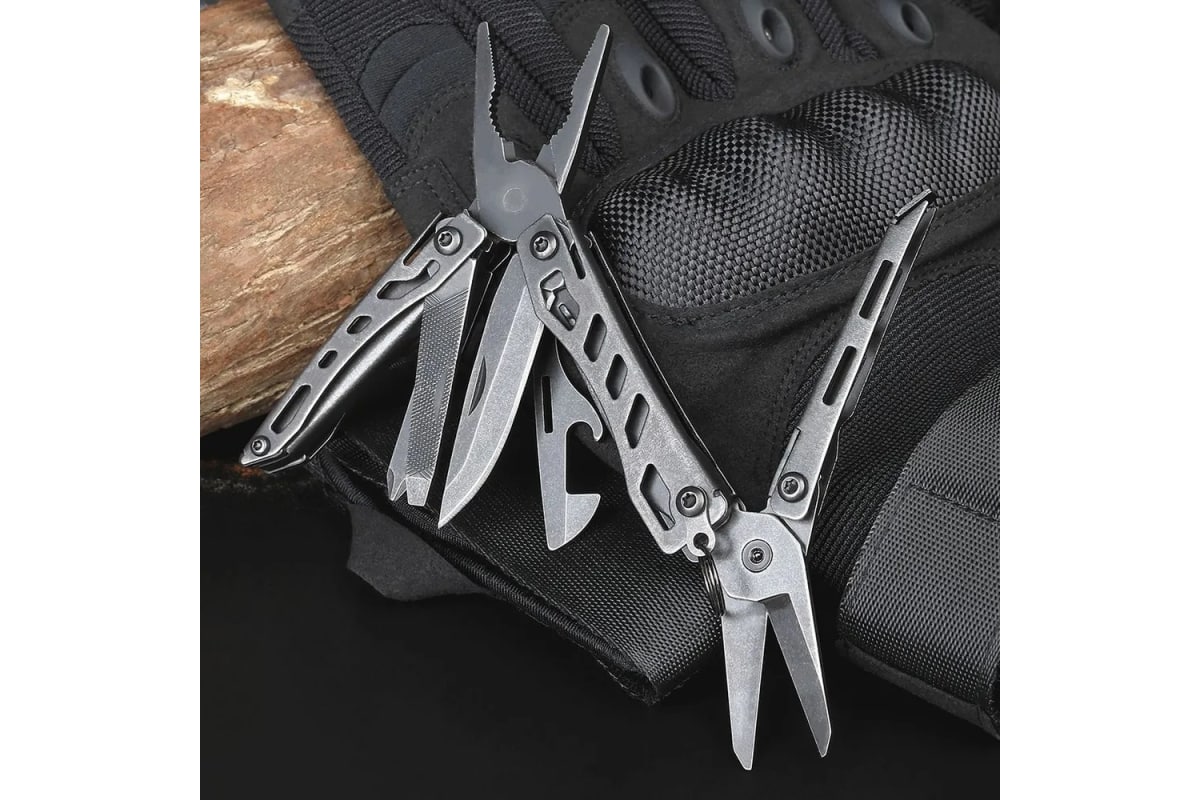 Инструменты: Нож прямой, Пила, Плоскогубцы, Отвертка крестовая, Отвертка плоская, Открывалка для бутылок, Открывалка для консервов, Ножницы