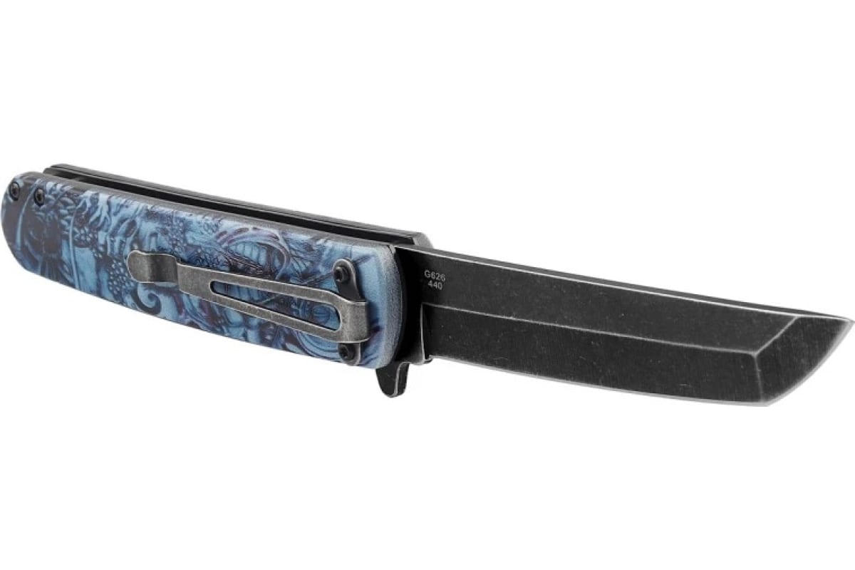 У ножа клинок формы Tanto. Подобная форма считается эффективной для колющих движений при работе с твёрдыми или плотными видами материалов. Изделие окажет пользу в туристической деятельности и активном отдыхе.