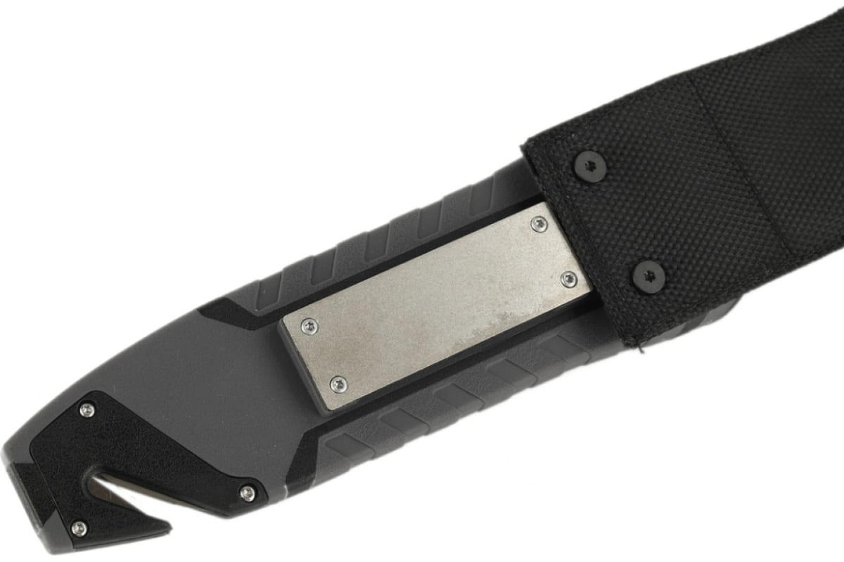 Нож идет в комплекте с фирменными ножнами, которые изготовлены из ударопрочного пластика и нейлона.