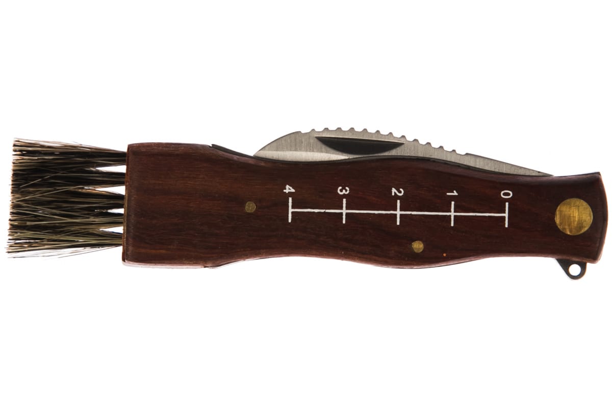 Конец деревянной рукоятки оснащен специальной кисточкой, благодаря которой можно очистить шляпку гриба от скопившегося мелкого мусора.