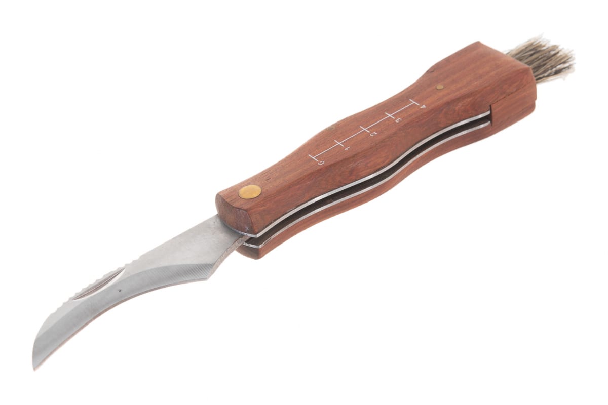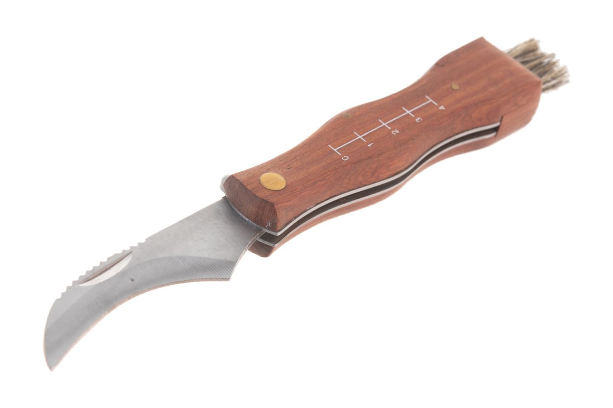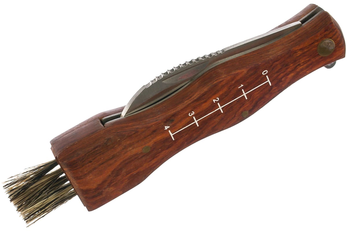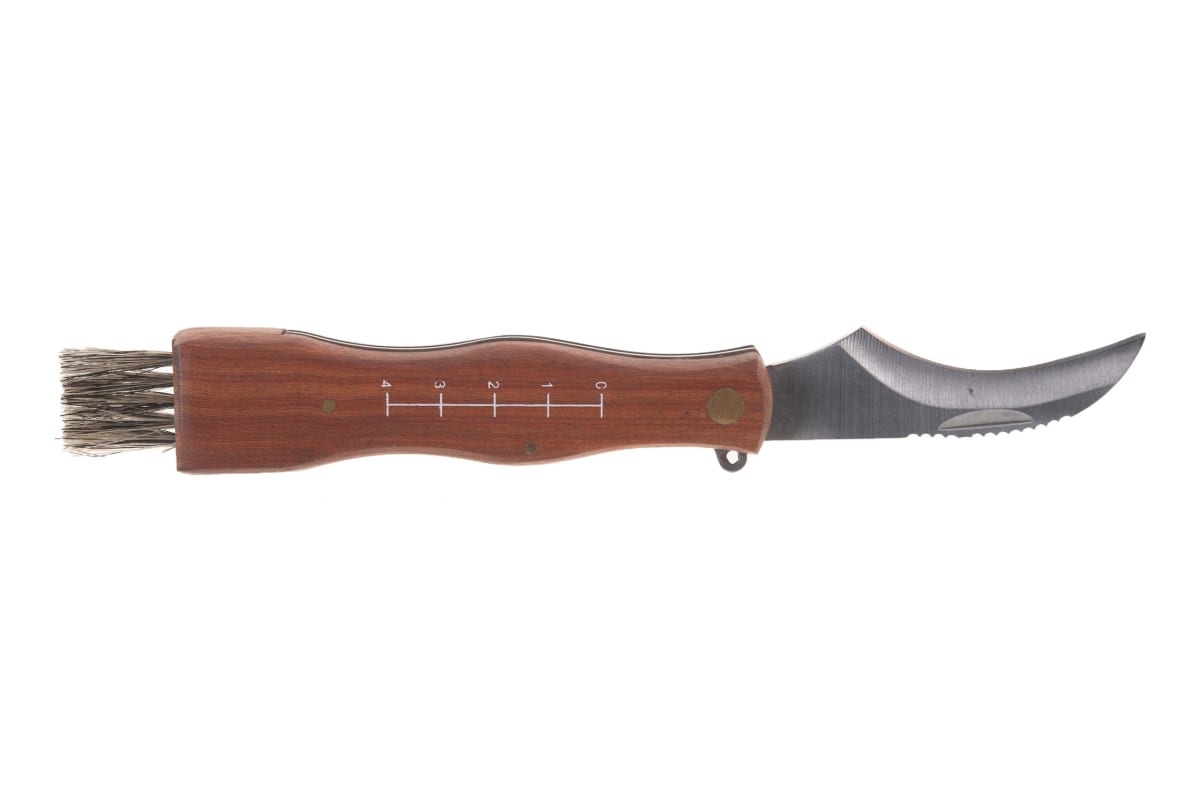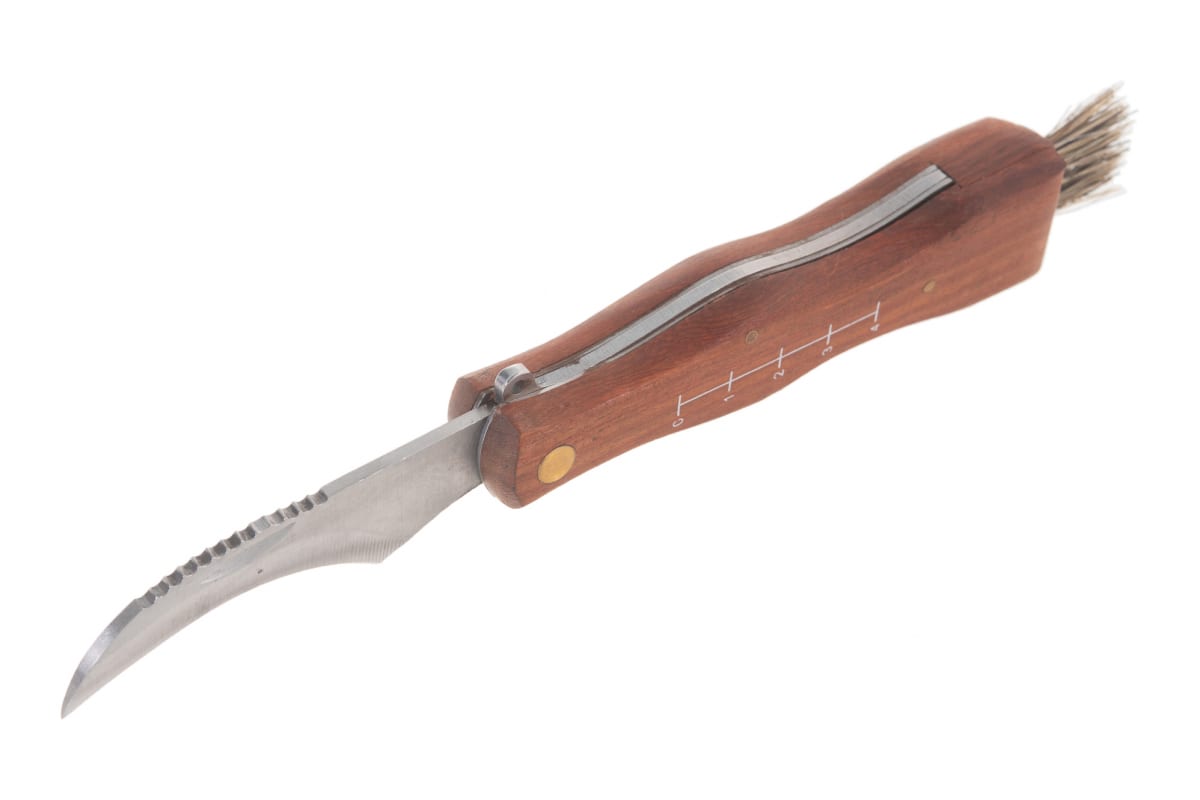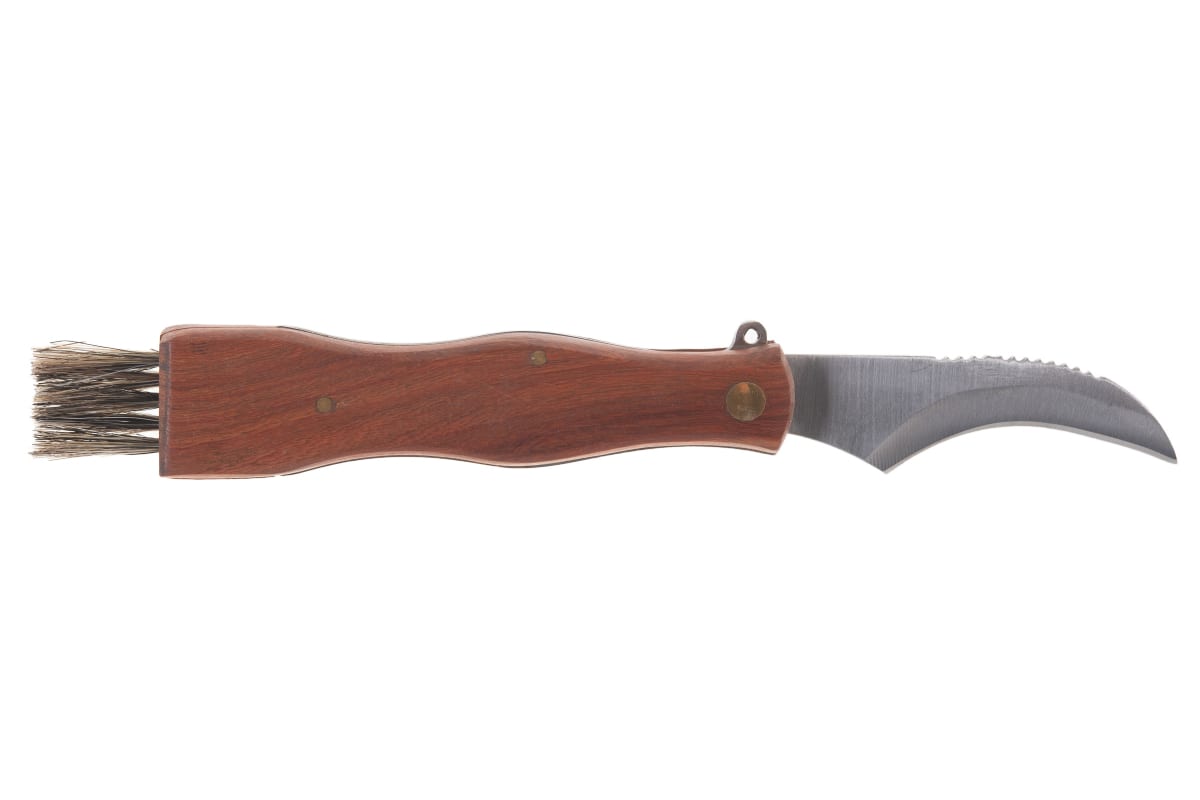 Клинок отличается прочностью и твердостью. Зубчатая верхняя кромка легко очищает остатки земли с ножки гриба.