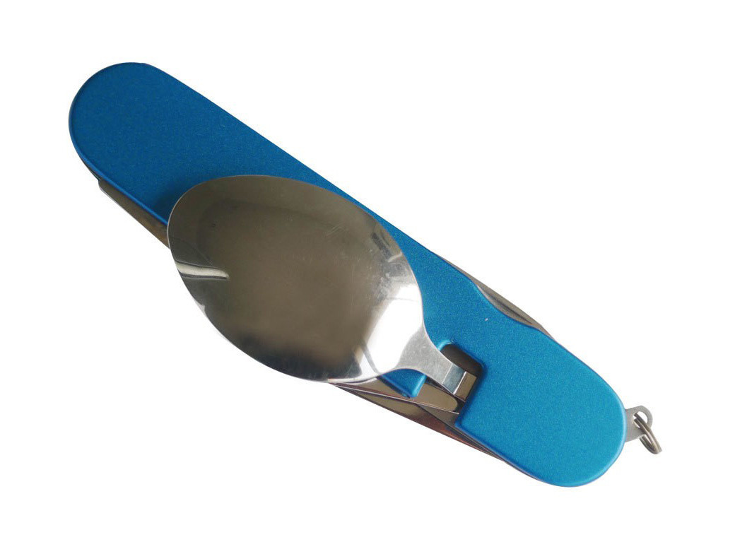 Описание: Складной набор столовых приборов из нержавеющей стали. Разборный комплект столовых приборов включает: ложку, вилку, нож и открывалку для бутылок.
