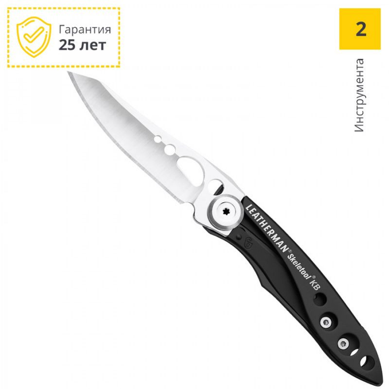 Описание: Нож Leatherman Skeletool Kb 832385 – стильный складной клинок премиум-класса для ежедневного пользования. В наборе помимо прямого стального лезвия марки 420HC входит открывалка для бутылок. Вытащить клинок можно одним пальцем благодаря выемке на острие. Предусмотрен замок лайнерок.