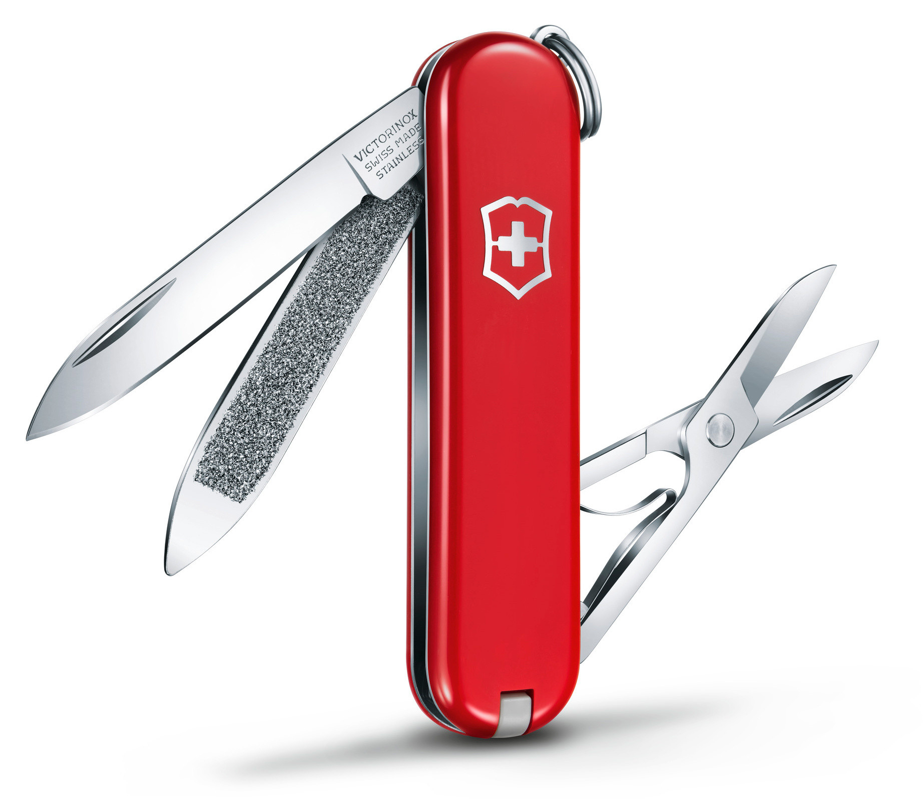 Список функций: Клинок, пилка для ногтей /инструмент для чистки ногтей, ножницы, пинцет, зубочистка, кольцо для ключей