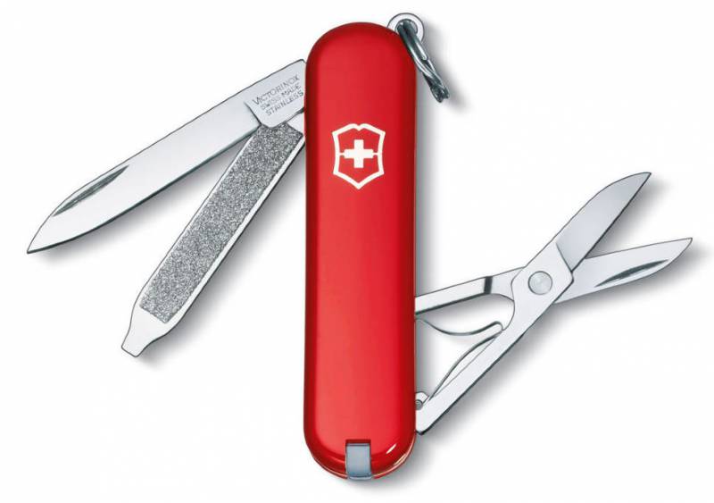 Описание Швейцарский армейский нож малого размера с набором из 7 функций.