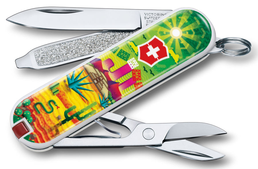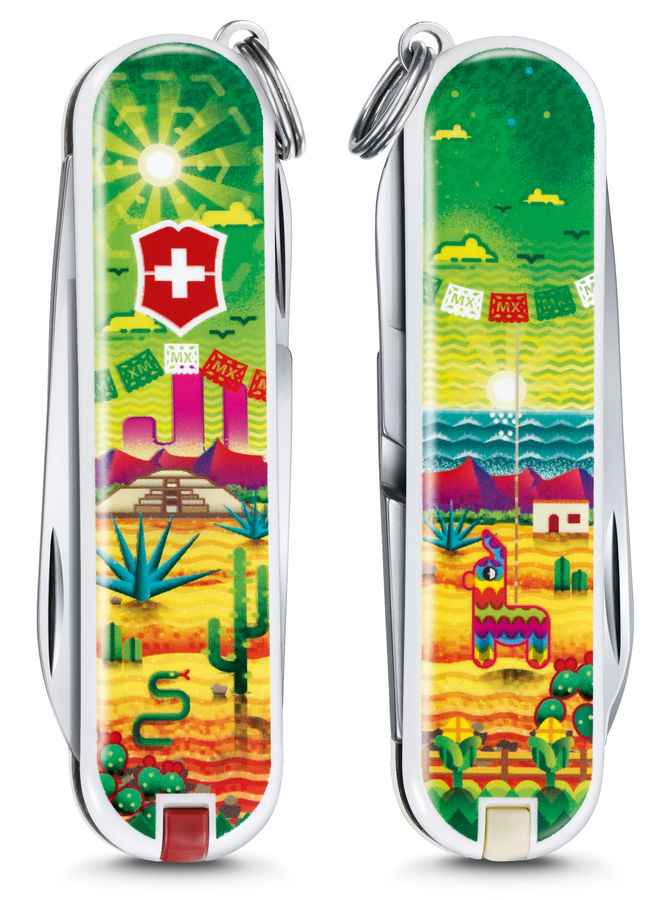 Для постоянного использования или для длительных походов приобретите складной нож Victorinox Classic Mexican Sunset. Он станет незаменимой вещью и справится с любыми задачами, благодаря 7 функциям, среди которых есть пилочка для ногтей, открывалка, нож и многое другое. Стильный и яркий дизайн, а также практичность не оставят никого равнодушным.