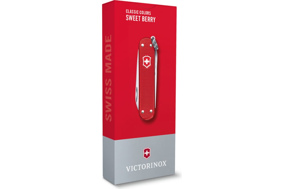 Нож-брелок Victorinox Classic SD Alox Colors Sweet Berry 58 мм, 5 функций, красный 0.6221.201G имеет стильный дизайн.