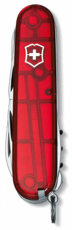 Список функций: большой клинок, малый клинок, открывалка для консервных банок / плоская отвертка, открывалка для бутылок / отвертка / паз для снятия изоляции, ножницы, шило / кернер, штопор, универсальный крючок, пинцет, зубочистка, кольцо для ключей