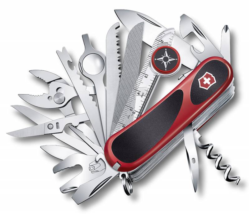 Список функций лезвие с системой блокировки, открывалка для консервных банок с отверткой 3 мм, открывалка для бутылок с плоской отвёрткой с системой блокировки -приспособлением для зачистки проводов, пилка для ногтей с инструментом для ухода за ногтями,