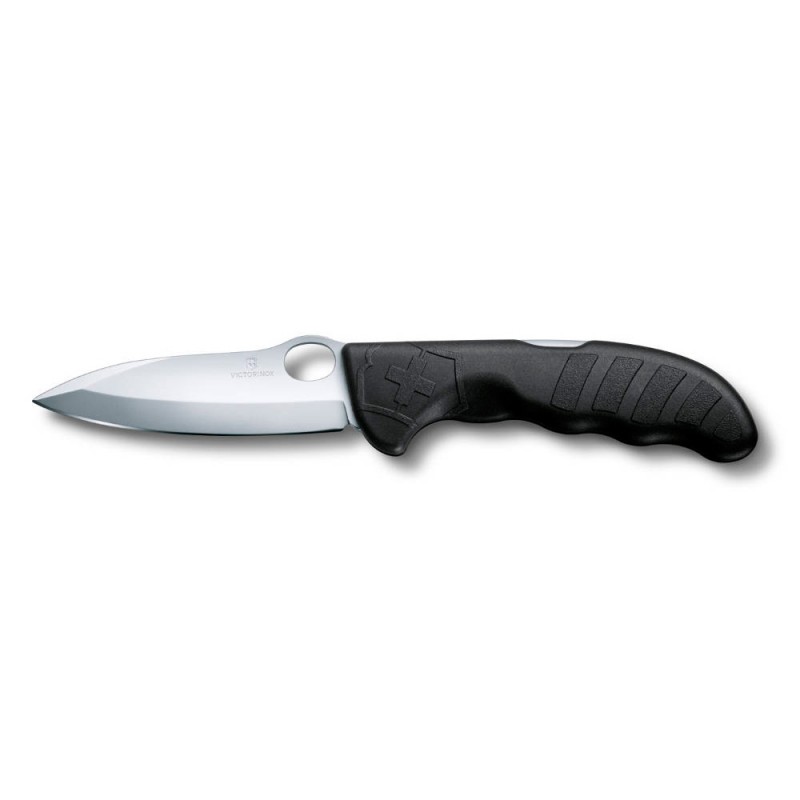 Описание Hunter Pro - образец минимализма. Прочный, надежный, он имеет широкое одностороннее лезвие с петлей для открывания одной рукой. Благодаря эргономичной форме рукояти этот нож очень прочно удерживается в руке. Модель поставляется в специально подобранном чехле.