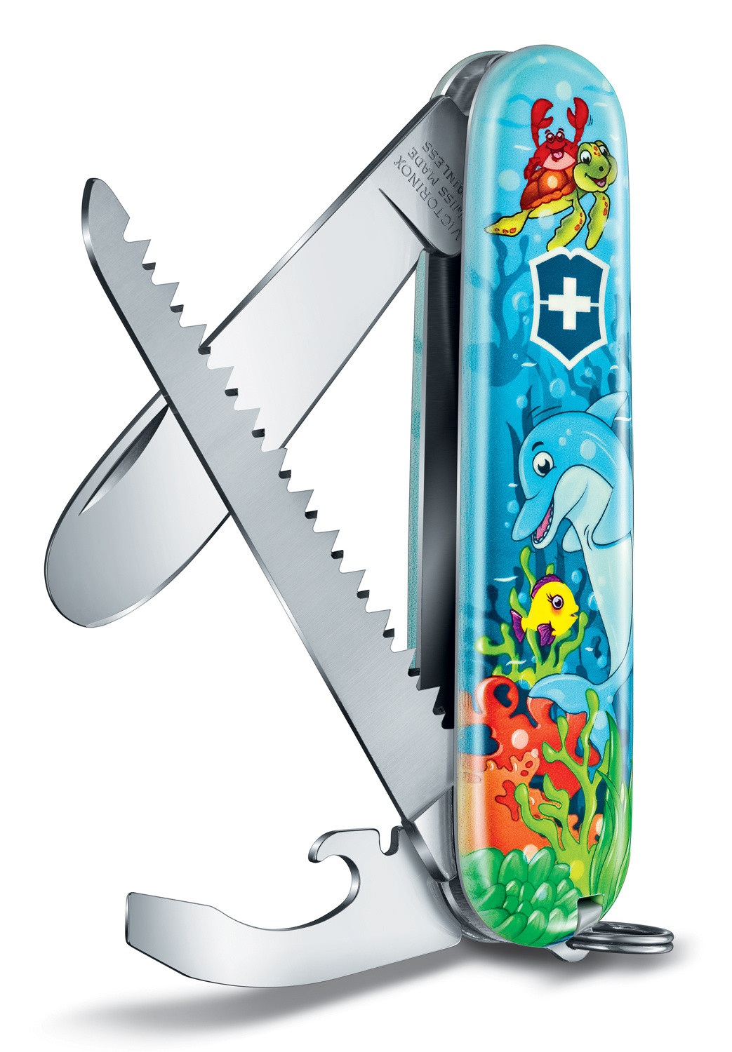 Описание: My First Victorinox - швейцарский карманный нож, созданный специально для детей. Особенностью ножа My First Victorinox является закруглённый кончик лезвия, что делает нож максимально безопасным. В комплекте книжка - раскраска.