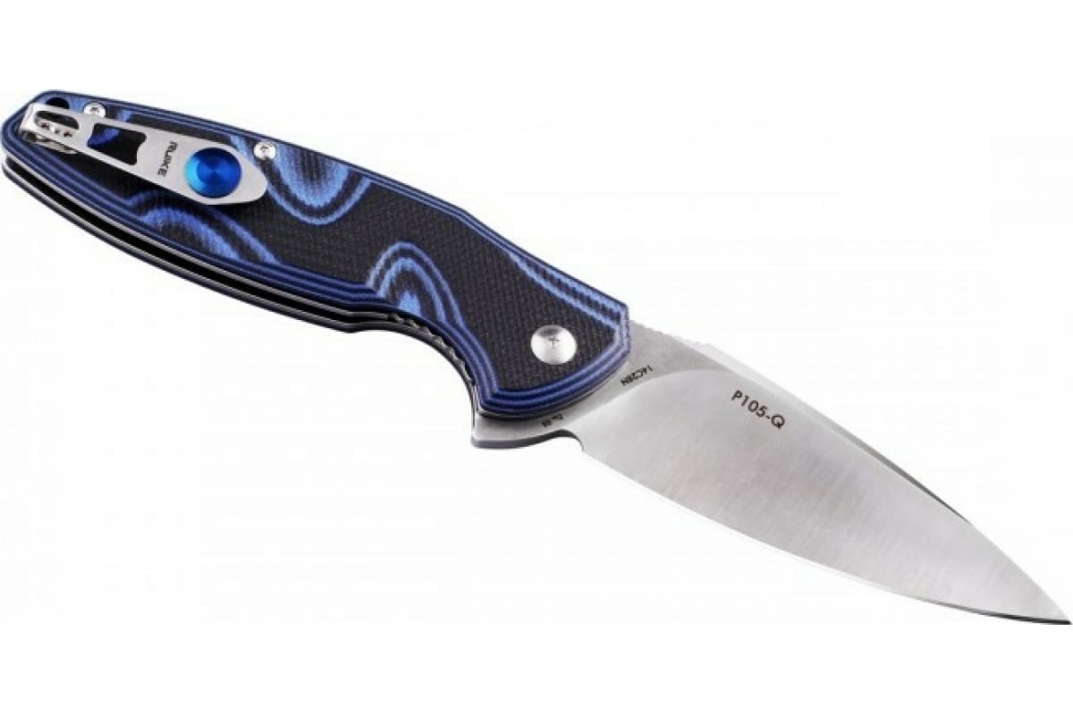 Нож Ruike Fang черно-синий P105-Q изготовлен из нержавеющей стали, которая не подвержена коррозии. Изделие не заржавеет от контакта с водой и другими веществами.