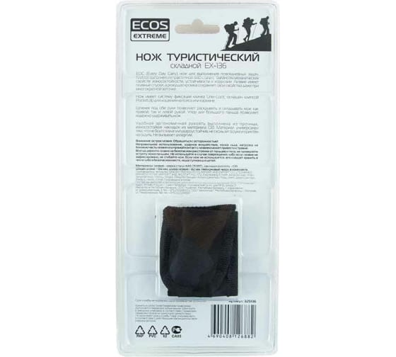 Нож Ecos SR061 EX-136 G10 325136 выполнен из стали, благодаря чему отличается прочностью