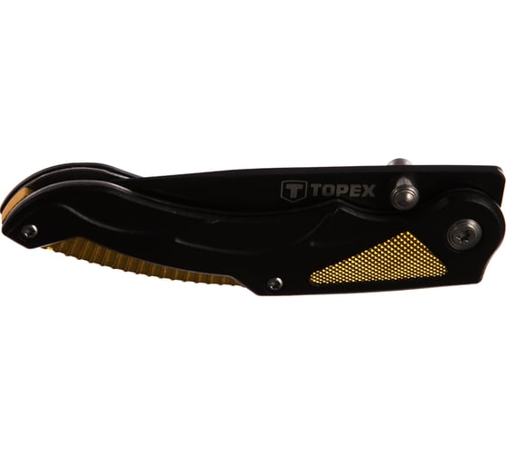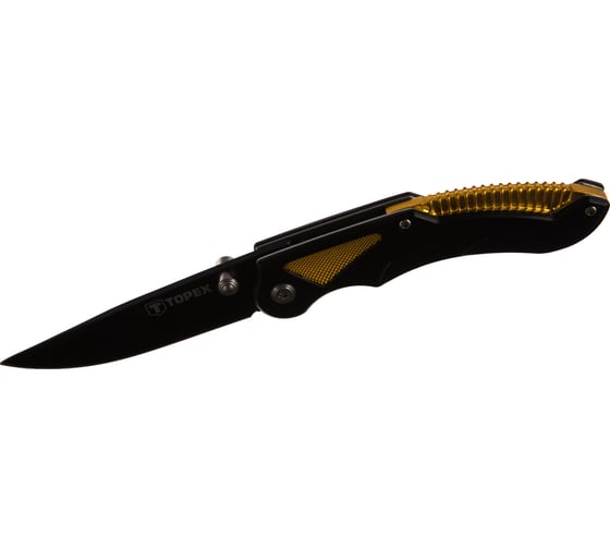 Складной нож с фиксатором TOPEX 98Z106 обладает широкой областью применения. Корпус изготовлен из анодированного алюминия, благодаря чему устойчив к коррозии. Специальный курок предохраняет лезвие от случайного складывания. Для крепления ножа на ремень предусмотрена клипса. Длина изделия в сложенном состоянии - 105 мм.