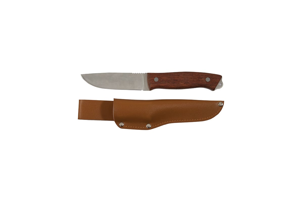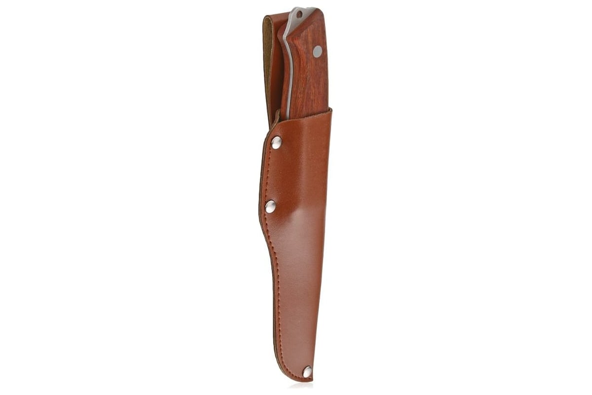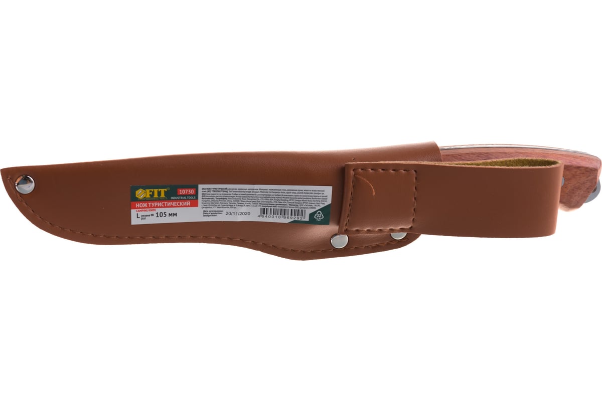 Нож туриста FIT IT нержавеющая сталь, деревянная ручка, лезвие 105 мм 10730 пригодится на охоте, рыбалке или в походе. Чехол из искусственной кожи обеспечивает безопасность хранения и транспортировки. Прочное лезвие изготовлено из нержавеющей стали и имеет длину 105 мм.