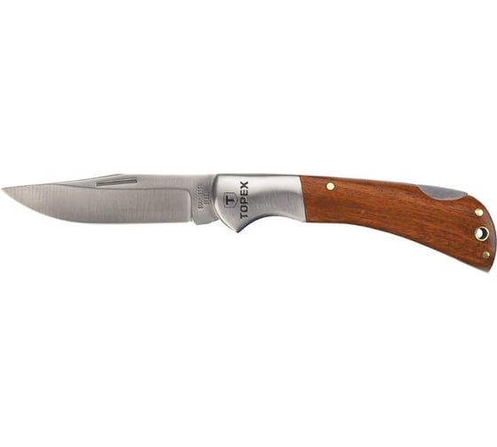 Универсальный складной нож TOPEX лезвие 80 мм 98Z007 применяется в туристическом деле. Лезвие и корпус изготовлены из нержавеющей стали, тем самым гарантируя длительную службу инструмента. Нож можно сложить, благодаря чему обеспечивается безопасное хранение и транспортировка. Деревянная рукоятка надежно располагается в руке при использовании.