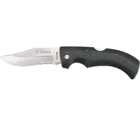 Складной универсальный нож TOPEX лезвие 90 мм 98Z101 - режущий инструмент широкого спектра применения. Высококачественная нержавеющая сталь гарантирует длительный срок эксплуатации. Для безопасности предусмотрена блокировка лезвия. Комфорт обеспечивает резиновая рукоятка. Складная конструкция облегчает хранение и транспортировку инструмента.