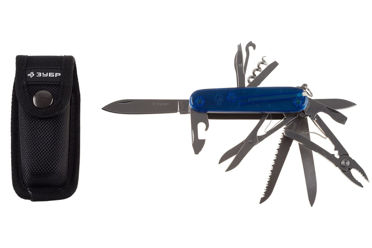 Складной многофункциональный нож 16 в 1 Зубр Эксперт 47786 подходит для повседневного использования.