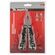 длинногубцы, захват для удерживания полукруглых предметов, кусачки, нож, малый нож, консервный нож, пилка для ногтей двусторонняя, пила, открывалка для бутылок, крестовая отвертка, три плоские отвертки (большая, средняя, малая)