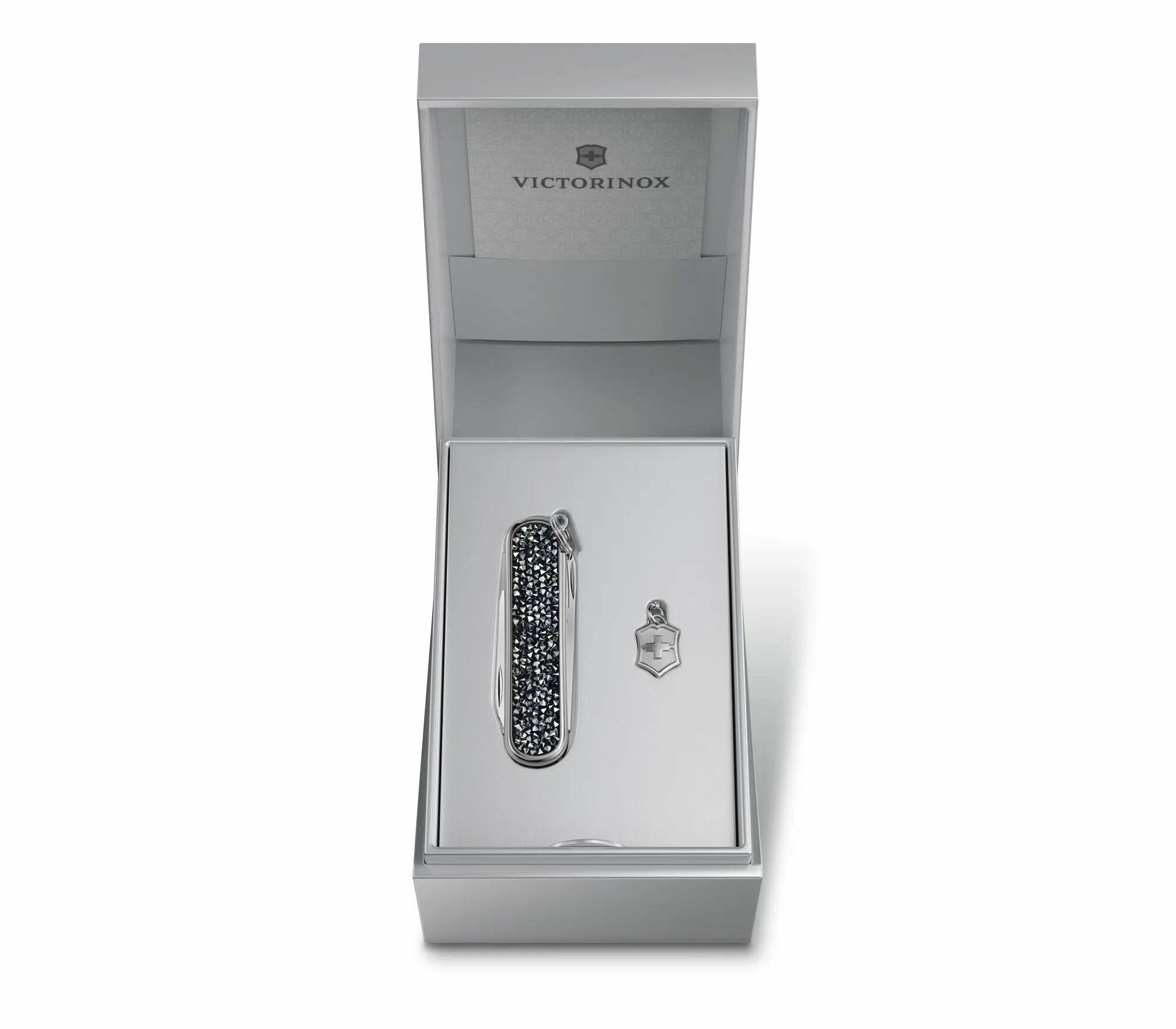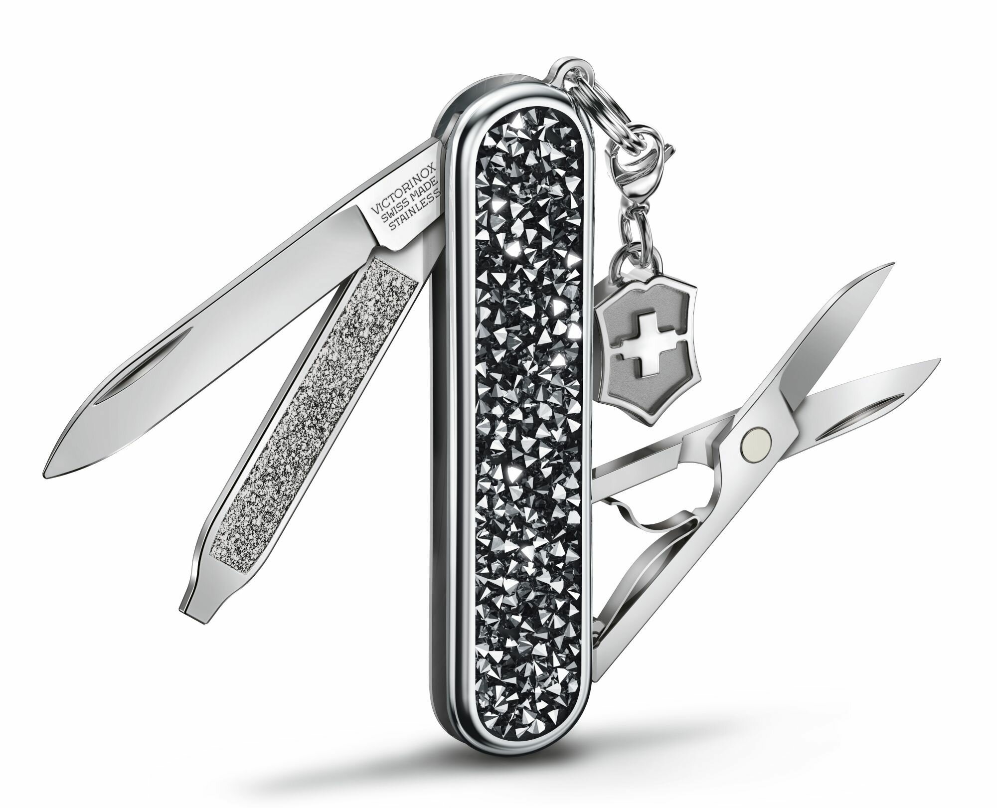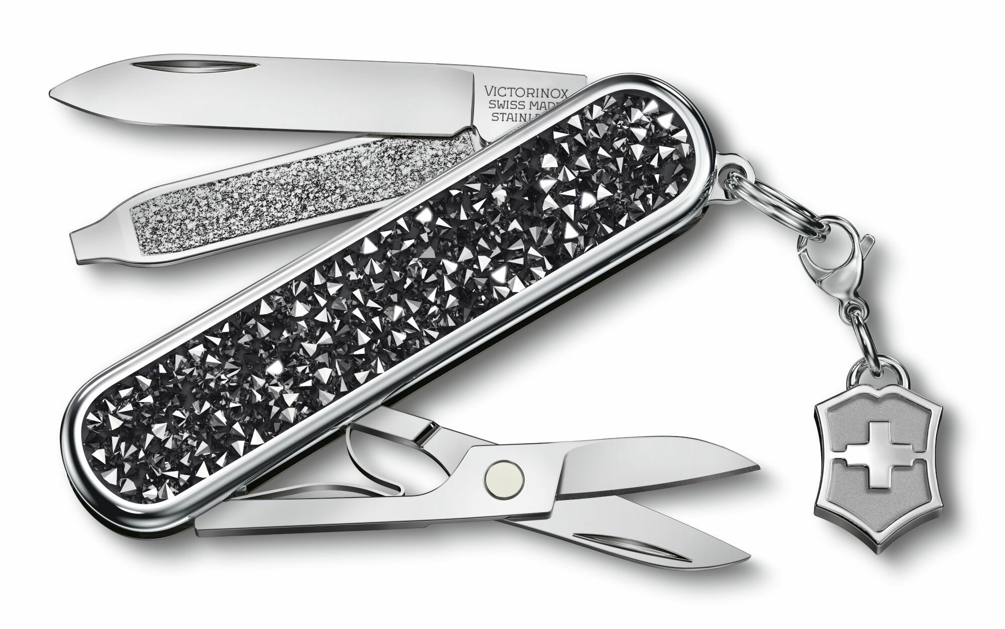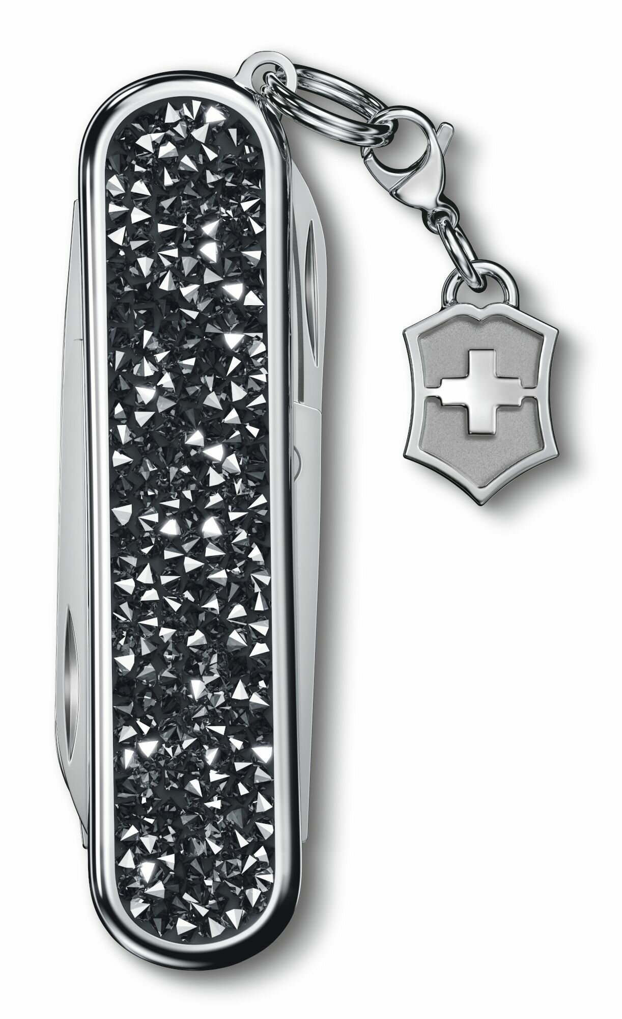 Нож-брелок Victorinox Crystal 0.6221.35 украшен кристаллами высочайшего качества, что придает ему роскошный вид и безупречную функциональность. Нержавеющая сталь.